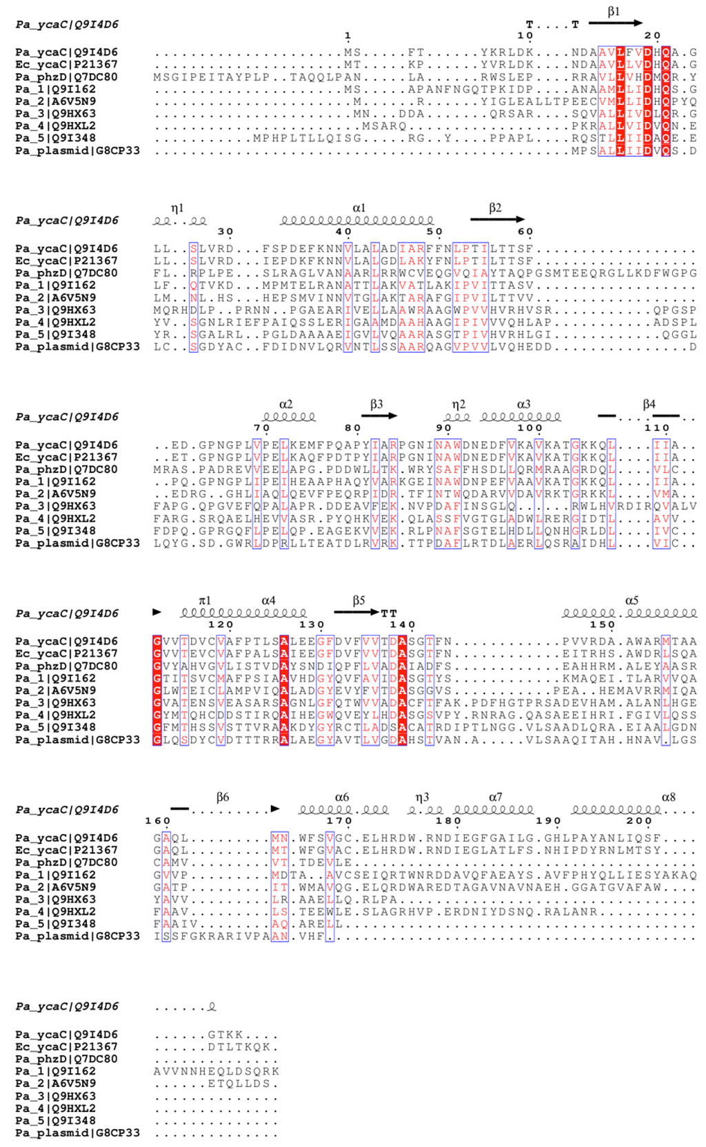 | Sequence | Ec YcaC | Ec PncA | Pa PhzD | Ec EntB | Ec RutB | Ec YecD | Pa1 | Pa2 | Pa3 | Pa4 | Pa5 | Pa Plasmid |