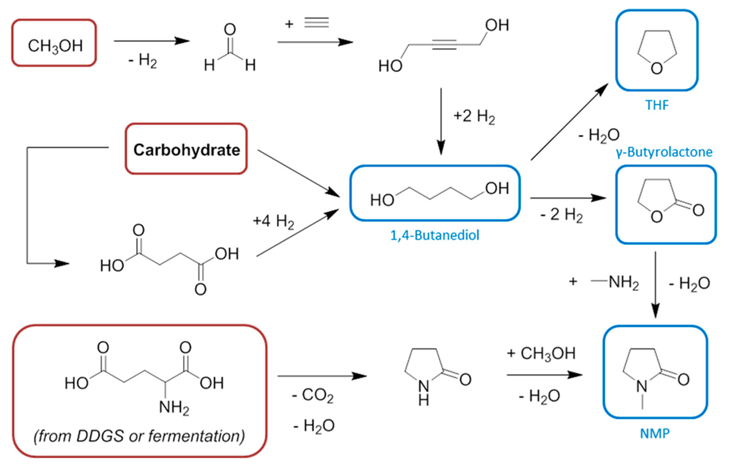 | 2-MeTHF | Reduction of carbohydrate | Pennakem Europa SAS [341] |