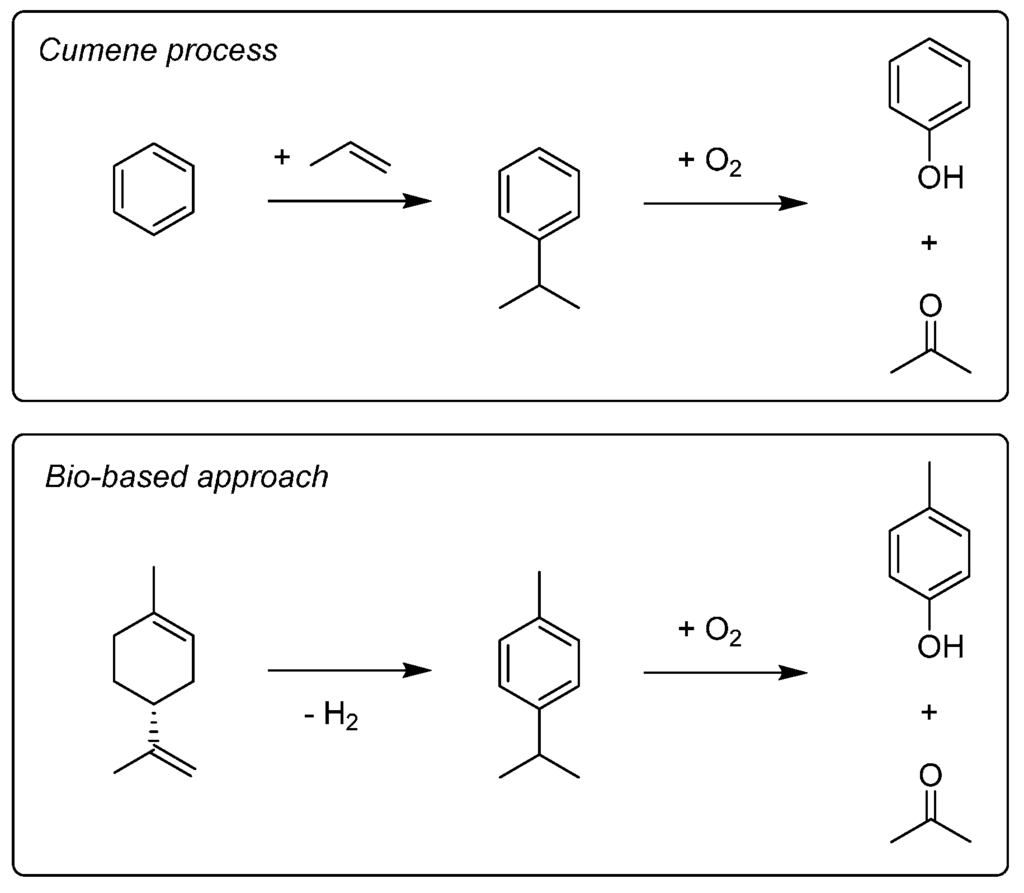 - Leita, B.A.; Warden, A.C.; Burke, N.; O'Shea, M.S.; Trimm, D. Production of p-cymene and hydrogen from a bio-renewable feedstock–1,8-cineole (eucalyptus oil). Green Chem. 2010, 12, 70–76. [Google Scholar] [CrossRef]