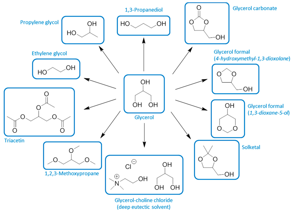- Agrobiobase Glycerol Formal. Available online: http://www.agrobiobase.com/en/database/bioproducts/chemistry-formulation-synthesis/glycerol-formal (accessed on 15 May 2015).