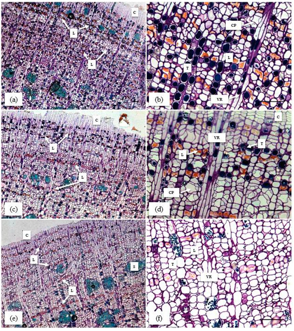 2.6. Anatomical Study of Rubber Tree Soft Bark