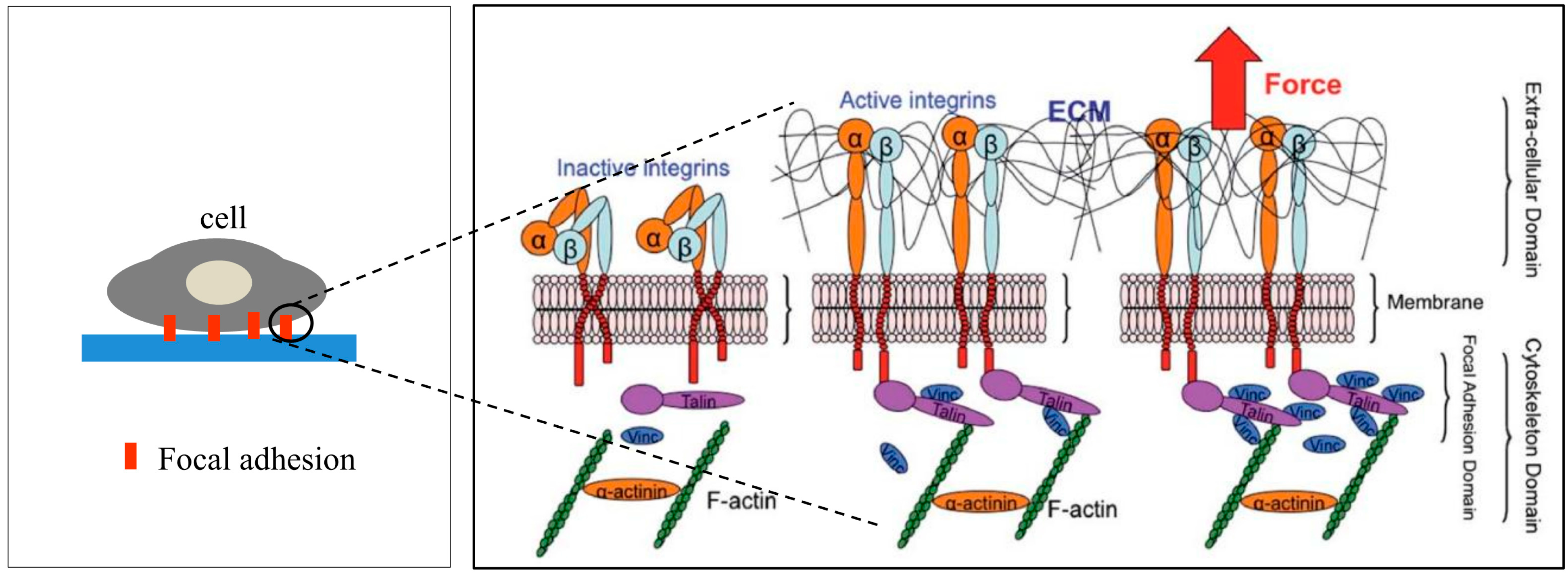 - Kong, D.; Ji, B.; Dai, L. Stabilizing to disruptive transition of focal adhesion response to mechanical forces. J. Biomech. 2010, 43, 2524–2529. [Google Scholar] [CrossRef] [PubMed]