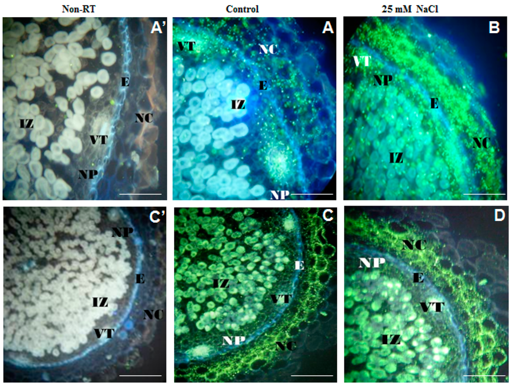 - Palma, F.; López-Gómez, M.; Tejera, N.A.; Lluch, C. Salicylic acid improves the salinity tolerance of Medicago sativa in symbiosis with Sinorhizobium meliloti by preventing nitrogen fixation inhibition. Plant Sci. 2013, 208, 75–82. [Google Scholar] [CrossRef] [PubMed]