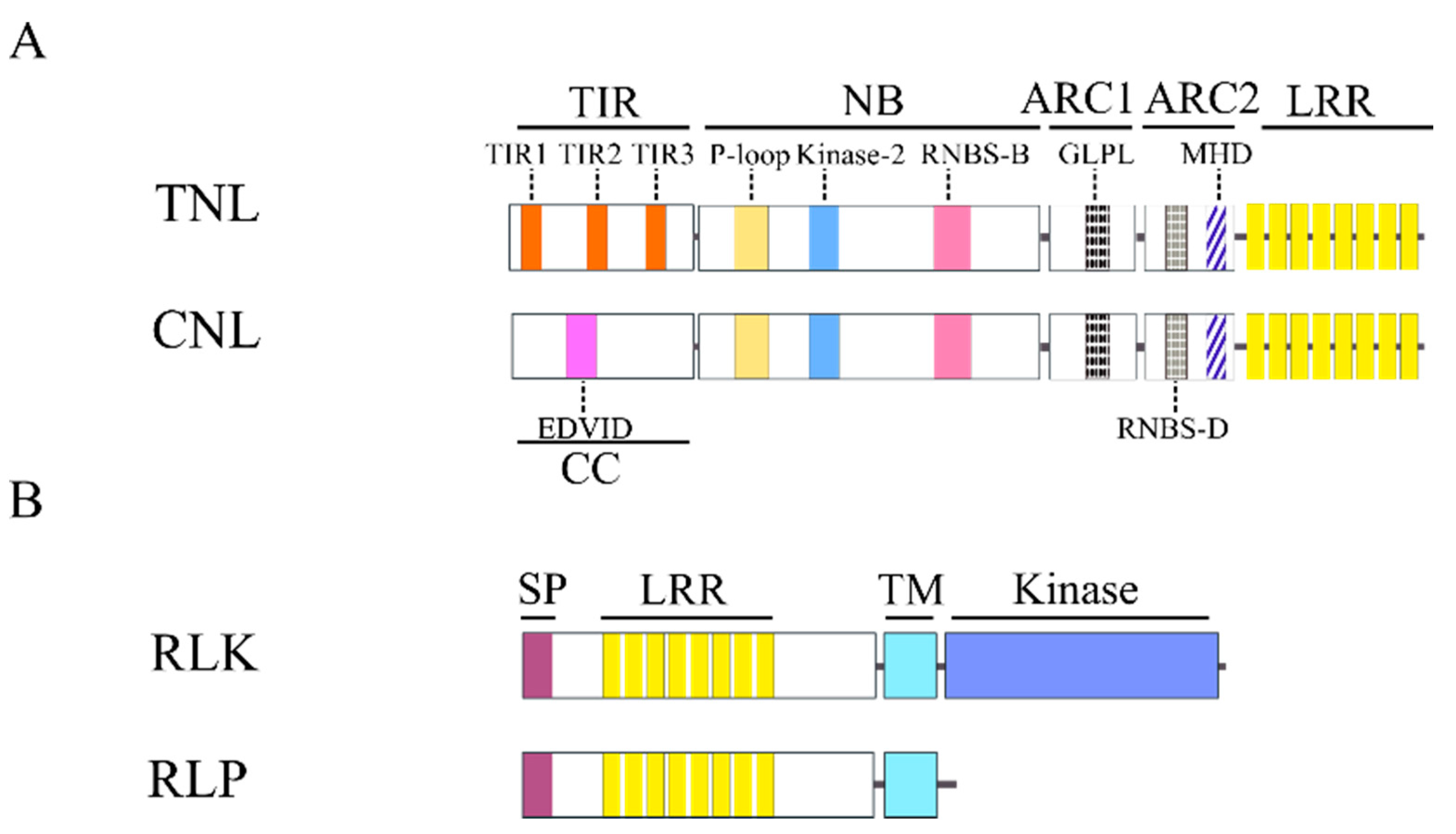 - Tarr, D.E.; Alexander, H.M. TIR-NBS-LRR genes are rare in monocots: Evidence from diverse monocot orders. BMC Res. Notes 2009, 2, 197–206. [Google Scholar] [CrossRef] [PubMed]