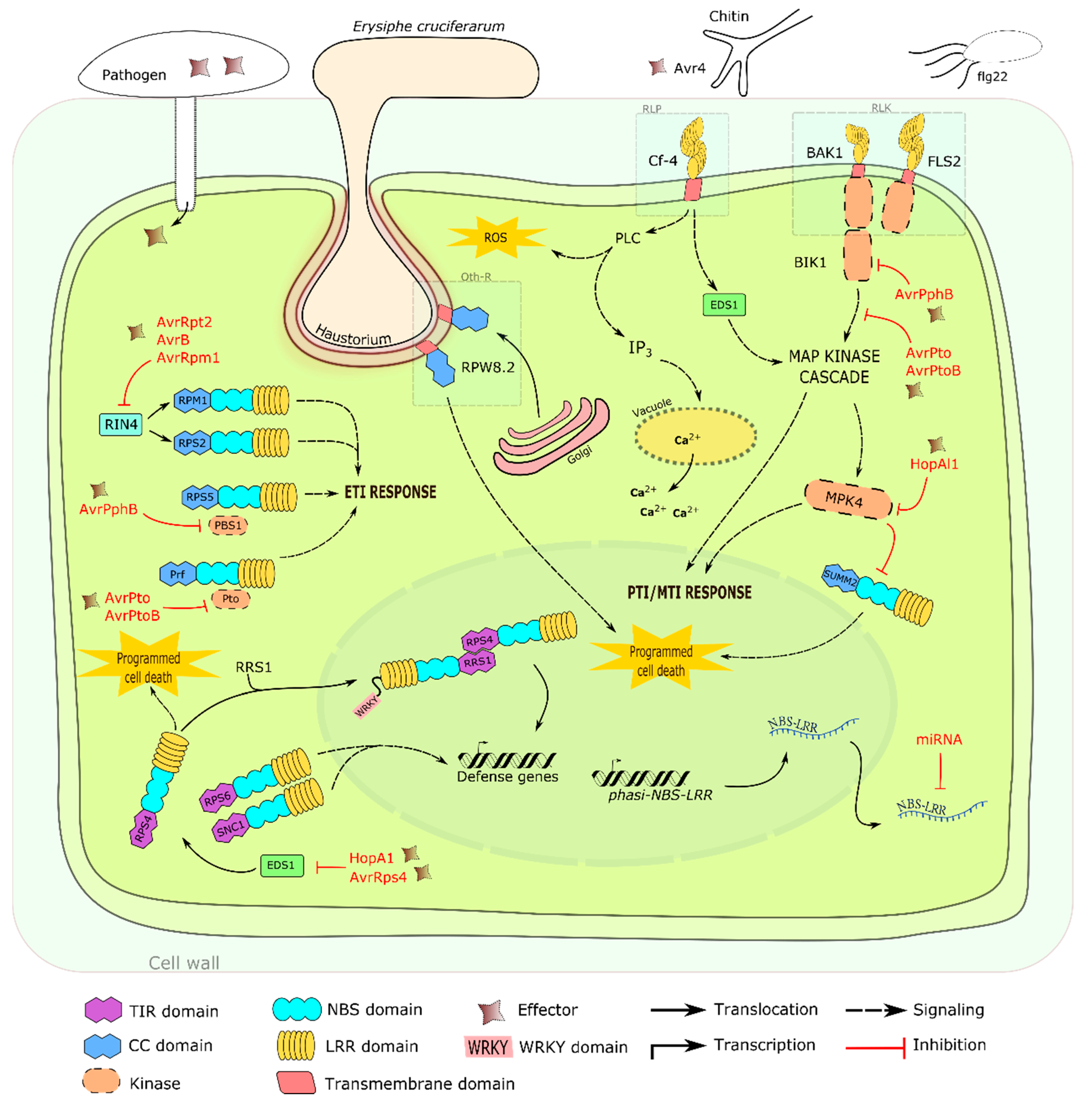 | FLS2 | AED95370 | LRR-STK | RLK | 5 | Powdery mildew | AvrPto, AvrPtoB | P. syringae | [99] | |