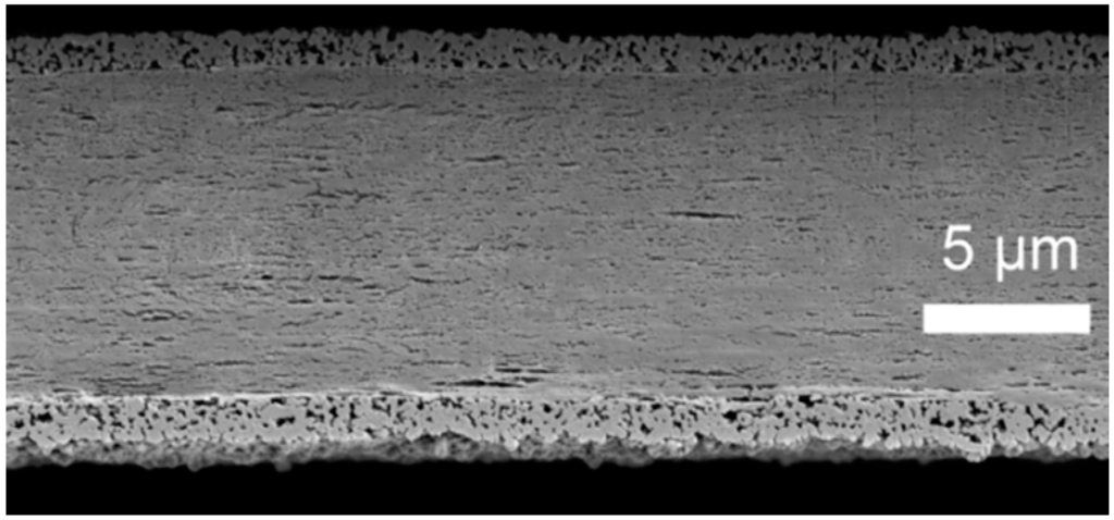 SEM picture of the cross section of separator COATED prepared by ion beam cutting.
