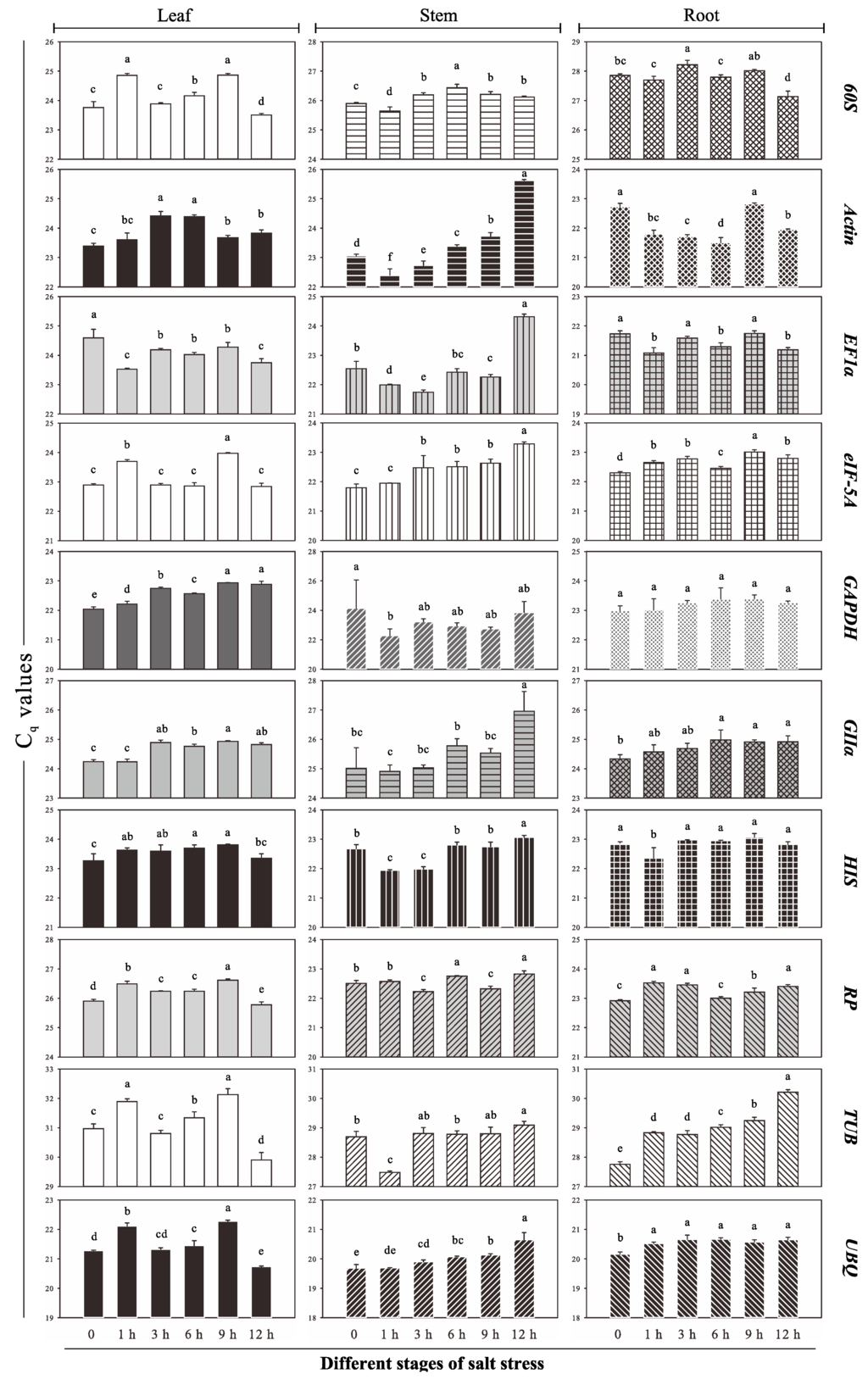 - Xu, M.; Zhang, B.; Su, X.; Zhang, S.; Huang, M. Reference gene selection for quantitative real-time polymerase chain reaction in Populus. Anal. Biochem. 2011, 408, 337–339. [Google Scholar] [CrossRef] [PubMed]