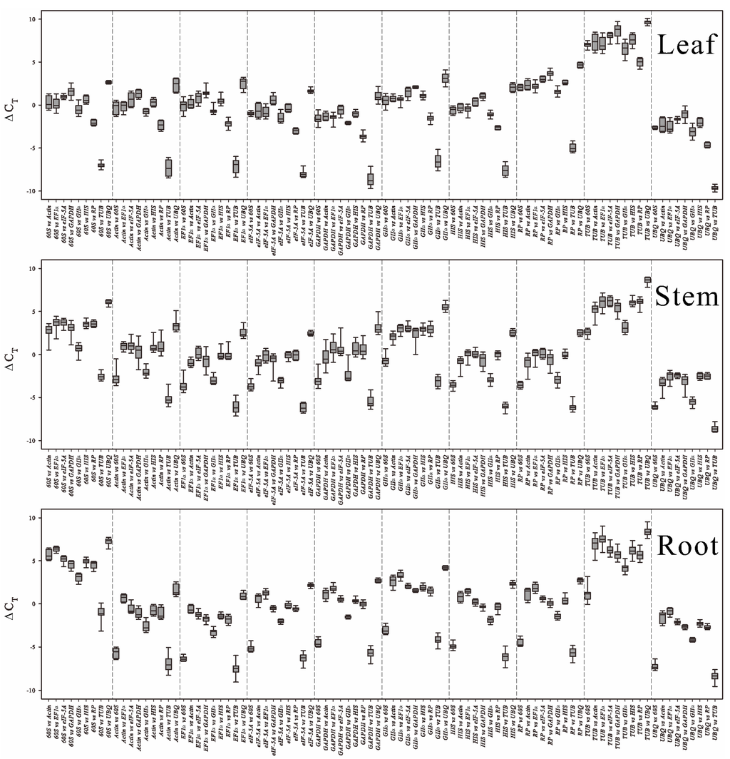 | Δ Ct | RP + HIS + eIF-5A | UBQ + HIS + eIF-5A | UBQ + eIF-5A + GAPDH |