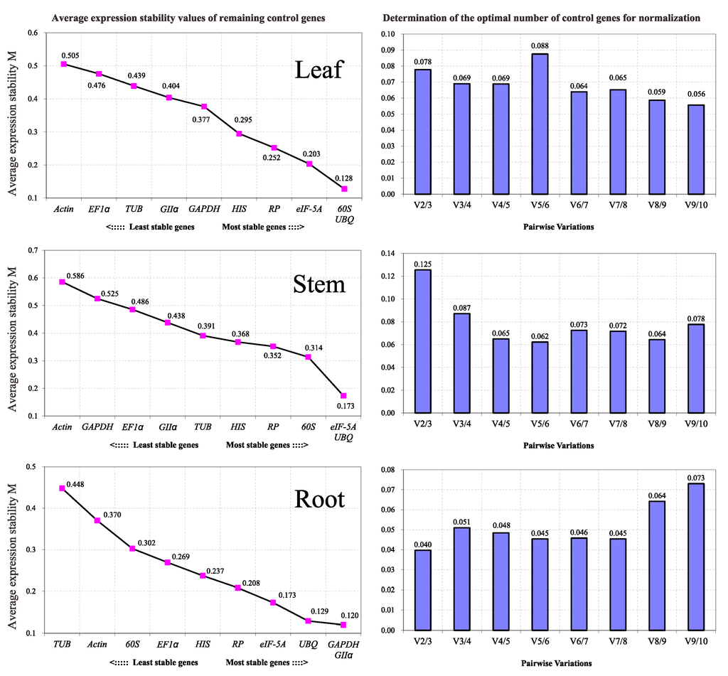 | geNorm | 60S + UBQ + eIF-5A | eIF-5A + UBQ + 60S + RP + HIS + TUB | GAPDH + GIIα + UBQ |