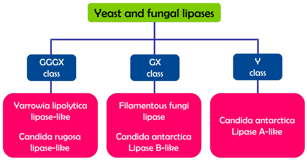 Classification of yeast and fungal lipases.