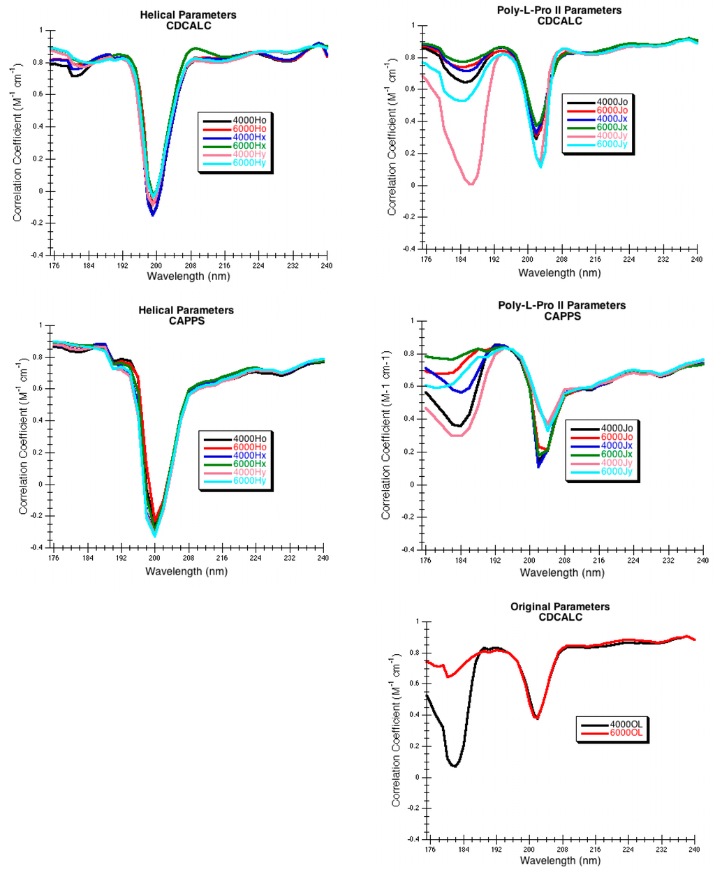 Figure 8). The CDCALC portion of the program generated the normal modes and spectrum for each protein. Three different dispersive parameters were tested: the original parameters created for the dipole interaction model (OL) [