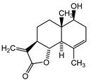 | 5 | 3aR-santamarine | ![]() | 13C-NMR; 1H-NMR; HMBC; HMQC; NOSEY; m.p.; UV; CD; HR-ESI-TOF-MS |