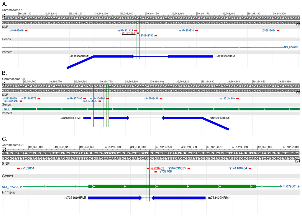 | rs12979860HRMf | CGAGGCGACCACGGAGCTCCCCGAAGGC | - | 39248130–39248145 |