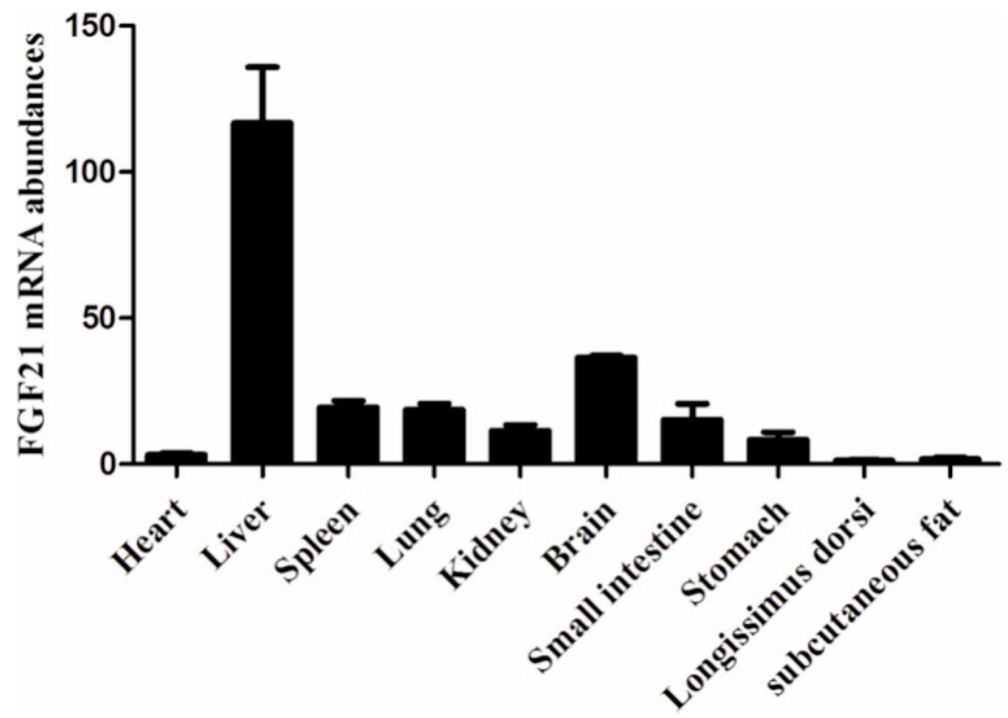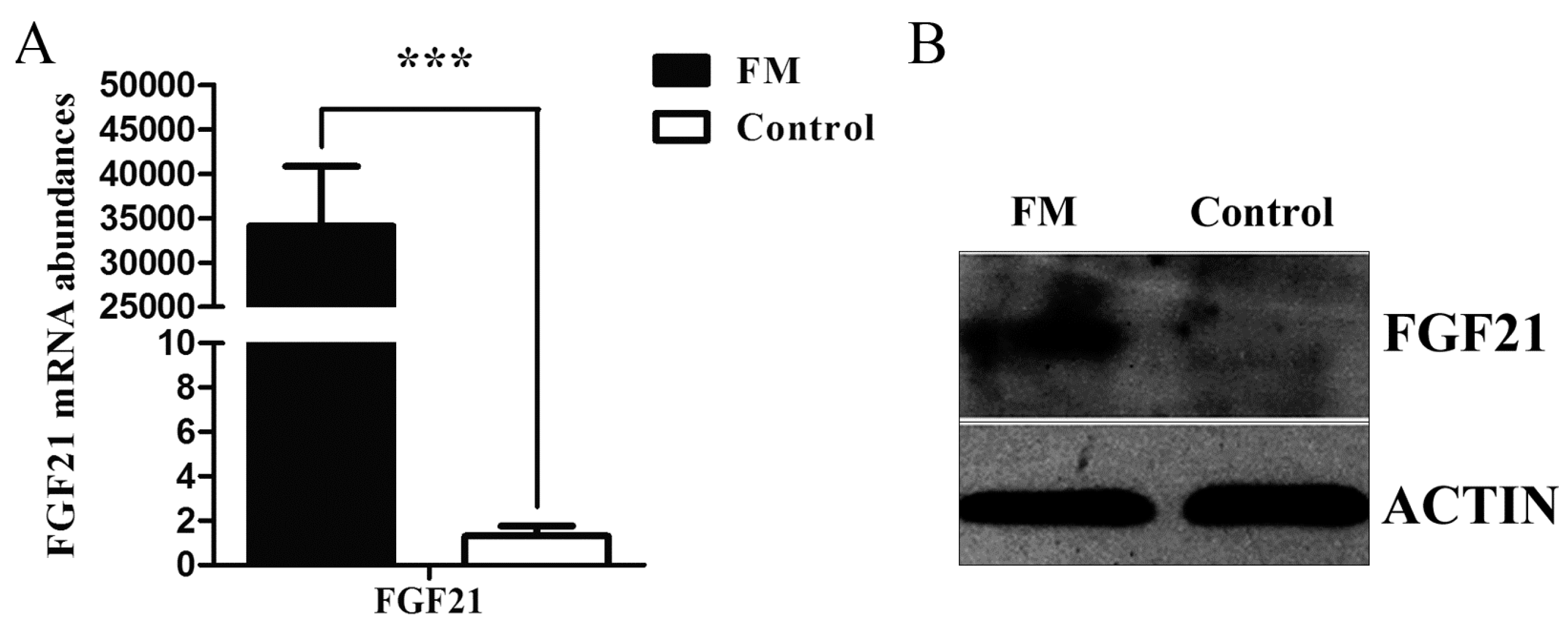 2.1. Low Expression of Fibroblast Growth Factor 21 (FGF21) in Fatty Tissue