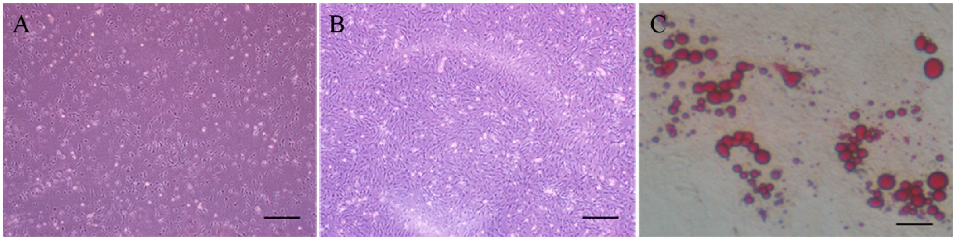 2.2. Establishment and Identification of the Intramuscular Preadipocyte Cell Line