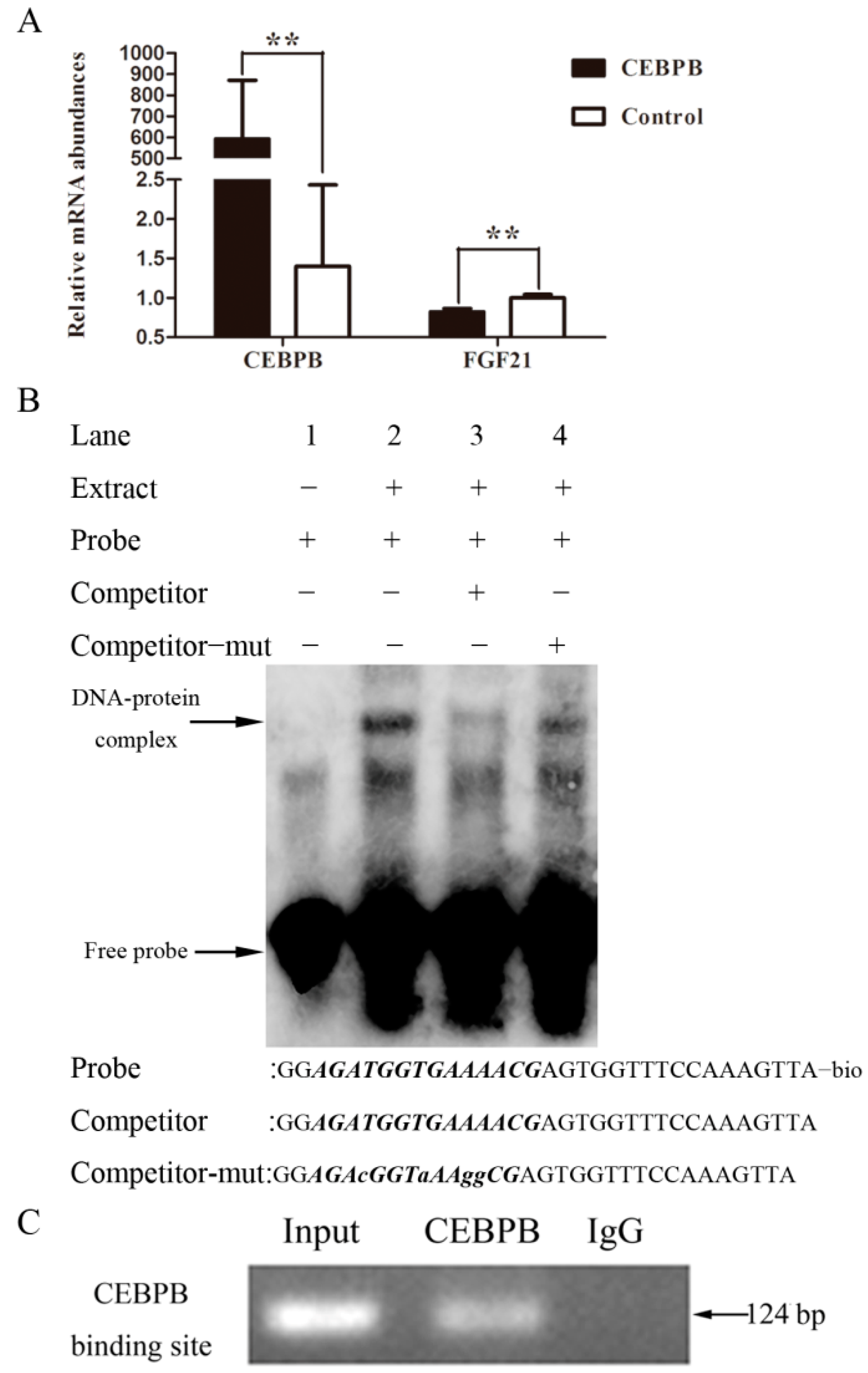 2.5. The Inhibitory Effect of the Transcription Factor CEBPB in FGF21 Expression