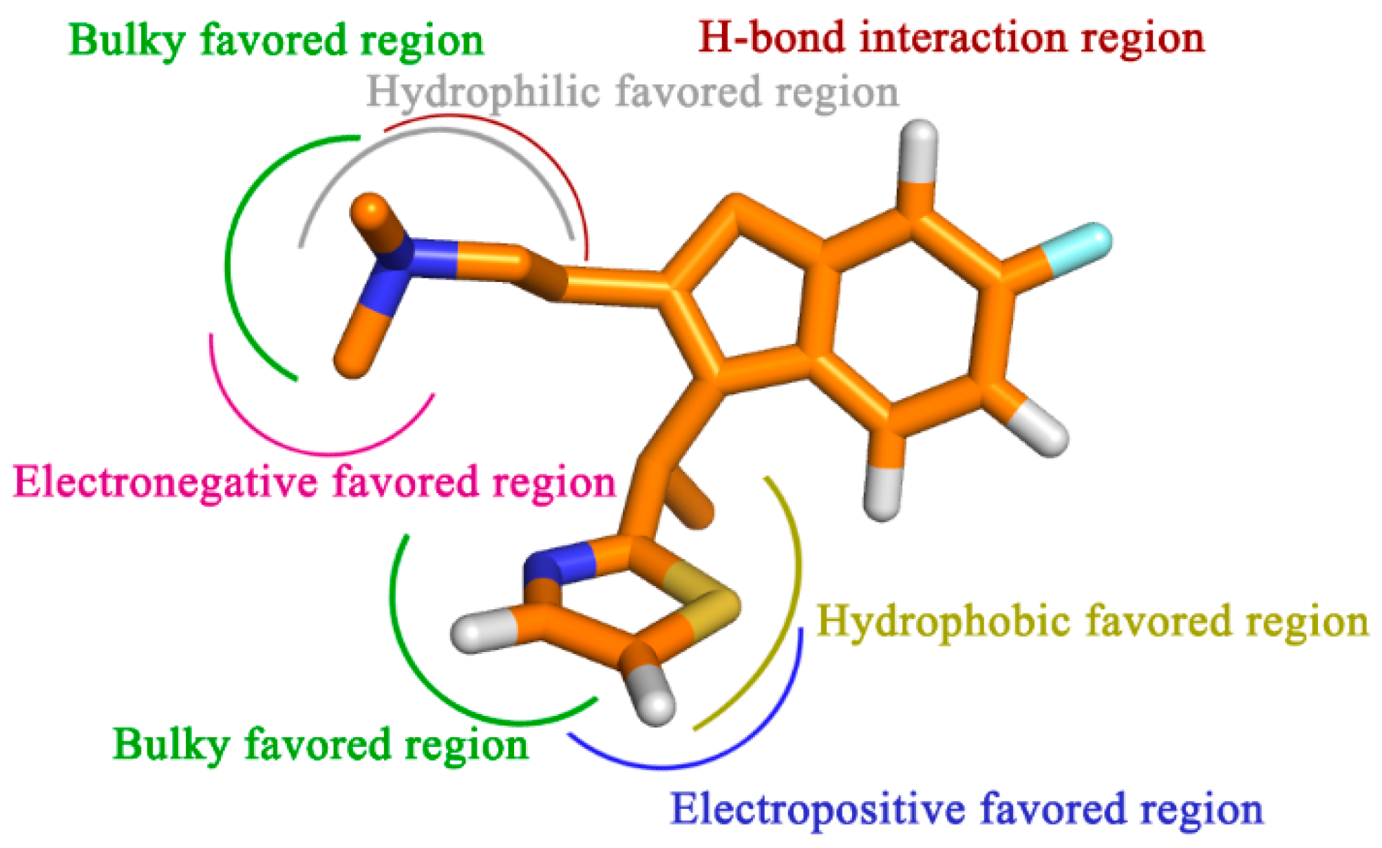Q2 > 0.5), indicating an unacceptable 3D-QSAR model. Thus, the CoMSIA models with a combination of five descriptor fields, including S, E, hydrophobic (H), H-bond donor (HB-donor) and acceptor (HB-acceptor), were developed to generate the optimal 3D-QSAR model.