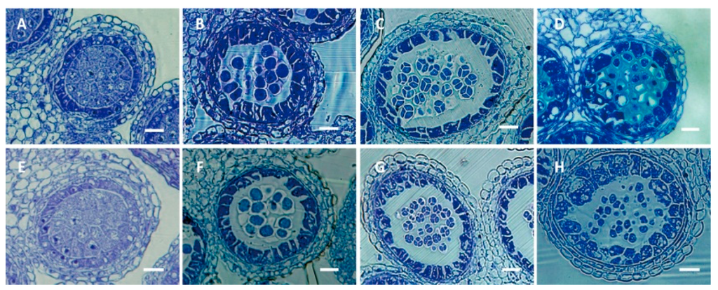 2.1. The Floral Bud Size Is Associated with the Microspore Developmental Stage
