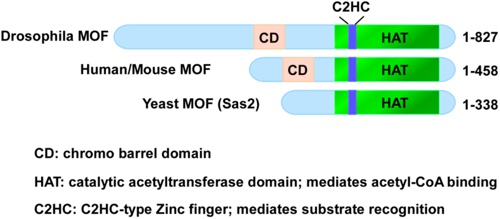 - Chen, Q.; Costa, M.; Sun, H. Structure and function of histone acetyltransferase MOF. AIMS Biophys. 2015, 2, 555–569. [Google Scholar] [CrossRef]