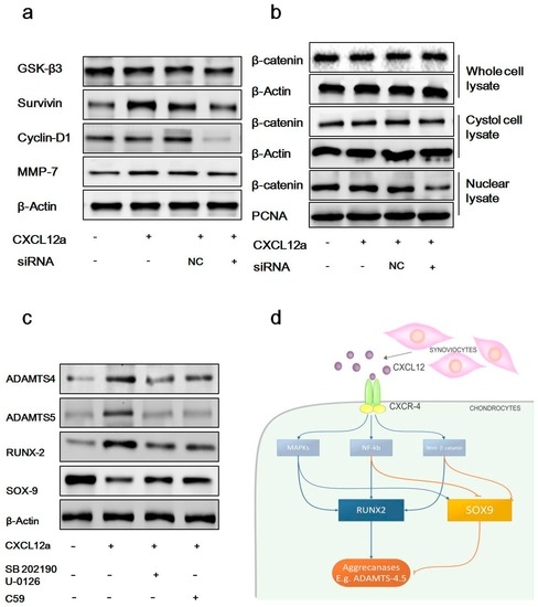 2.4. CXCL12a-Mediated Aggrecanase Activation of Chondrocytes Is Dependent on the NF-κB, MAPK, and Wnt/β-Catenin Pathways