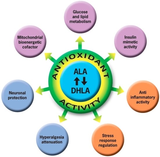 - Evans, J.L.; Goldfine, I.D. α-lipoic acid: A multifunctional antioxidant that improves insulin sensitivity in patients with type 2 diabetes. Diabetes Technol. Ther. 2000, 2, 401–413. [Google Scholar] [CrossRef] [PubMed]