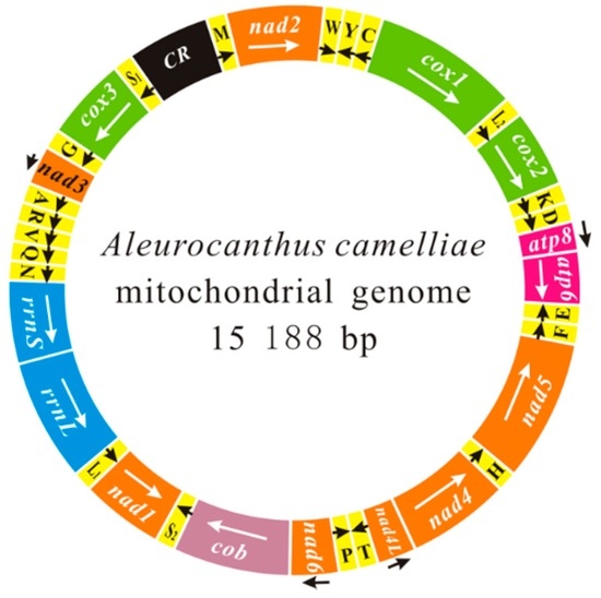 Chen, S.-C.; Wang, X.-Q.; Li, P.-W.; Hu, X.; Wang, J.-J.; Peng, P. The Complete Mitochondrial Genome of Aleurocanthus camelliae: Insights into Gene Arrangement and Genome Organization within the Family Aleyrodidae. Int. J. Mol. Sci. 2016, 17, 1843. https://doi.org/10.3390/ijms17111843