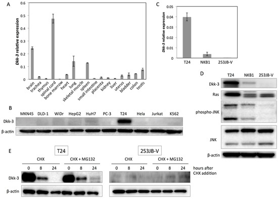 2.1. Dkk-3 Expression Was Specifically Upregulated in Human Bladder Cancer T24 Cells
