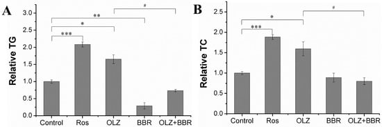 2.2. Effects of Treatment with OLZ, BBR, or Both on Biochemical Properties of 3T3-L1 Cells