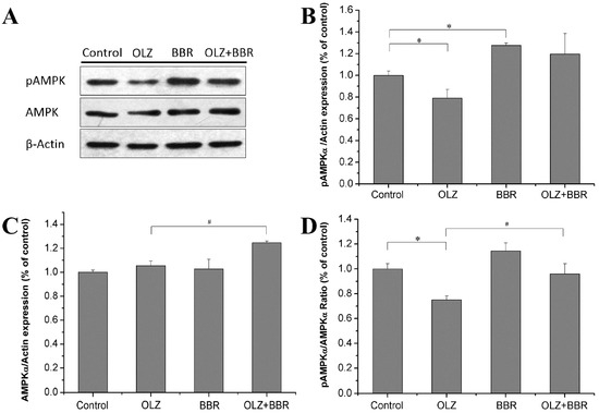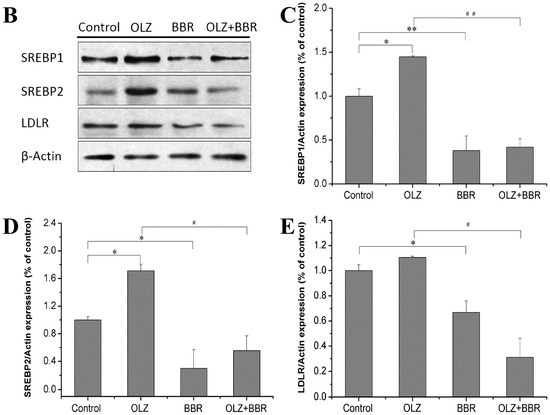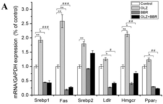 APA StyleLi, Y., Zhao, X., Feng, X., Liu, X., Deng, C., & Hu, C.-H. (2016). Berberine Alleviates Olanzapine-Induced Adipogenesis via the AMPKα–SREBP Pathway in 3T3-L1 Cells. International Journal of Molecular Sciences, 17(11), 1865. https://doi.org/10.3390/ijms17111865