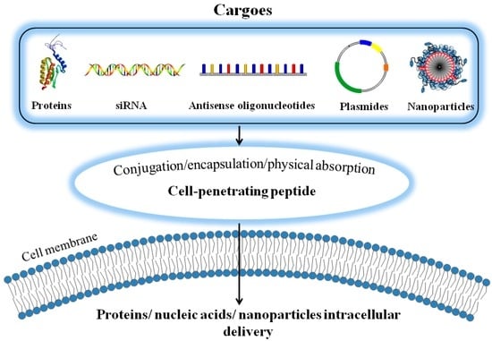 - Deshayes, S.; Morris, M.C.; Divita, G.; Heitz, F. Cell-penetrating peptides: Tools for intracellular delivery of therapeutics. Cell. Mol. Life Sci. 2005, 62, 1839–1849. [Google Scholar] [CrossRef] [PubMed]