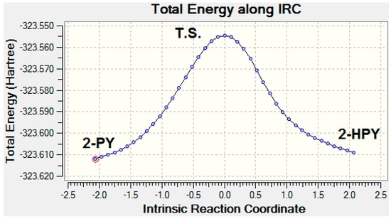 Intrinsic reaction coordinate (IRC) of the tautomerization of 2-HPYand 2-PY through the transition states (T.S.) which were obtained by using B3LYP/6-311++G** level of theory.
