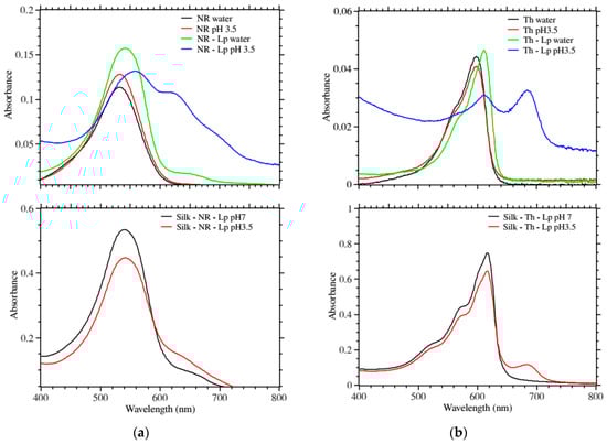2.1. Spectral Properties of LP–NR, LP–Th and Non-Optimized Silk Films Modified with LP–NR and LP–Th