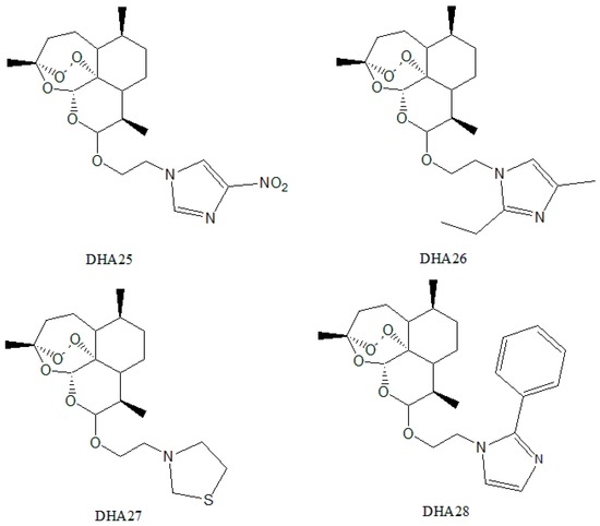 Based on the results of 3D-SAR and molecular docking, four compounds, named as DHA25-DHA28, with a higher total score (