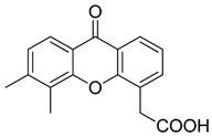 - Buchanan, C.M.; Shih, J.H.; Astin, J.W.; Rewcastle, G.W.; Flanagan, J.U.; Crosier, P.S.; Shepherd, P.R. DMXAA (vadimezan, ASA404) is a multi-kinase inhibitor targeting VEGFR2 in particular. Clin. Sci. 2012, 122, 449–457. [Google Scholar] [CrossRef] [PubMed]
