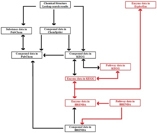 The Kyoto Encyclopedia of Genes and Genomes (KEGG) [33] was developed by Kyoto University, Japan. It contains comprehensive information about the functions of living organisms at all levels: genomes, genes, proteins, enzymes, metabolic pathways, and small molecules. A detailed presentation of the entire content of KEGG exceeds the scope of this review. Selected sections of the database are dedicated to small molecules (KEGG COMPOUND), reactions catalyzed by enzymes (KEGG REACTION), and maps of metabolic pathways (KEGG PATHWAY). The database also contains information about specific compound groups (carbohydrates, peptides, and lipids). Tabs in KEGG are cross-linked. Compound data are linked with the associated enzymes and pathways, and enzyme data are linked with the relevant compounds and pathways. Information about metabolic pathway includes links to the associated enzymes and compounds. KEGG also provides links to other databases containing information about compound properties (PubChem), ontologies associated with a given compound (ChEBI), and enzyme data (ExplorEnz and BRENDA). The resources in KEGG can be accessed via other databases, including ChemSpider (compound data) and ExplorEnz (enzyme data).