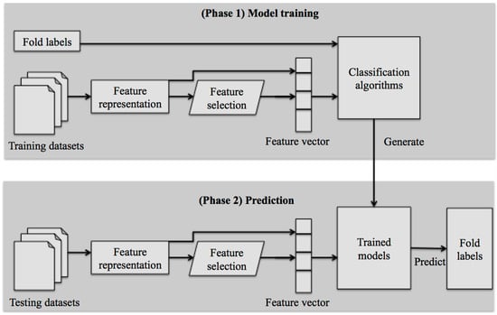 This section describes the mechanism of protein fold recognition by machine learning-based methods. The overall procedure in protein fold recognition by machine learning-based methods includes two phases (Figure 2): (1) model training; and (2) prediction.