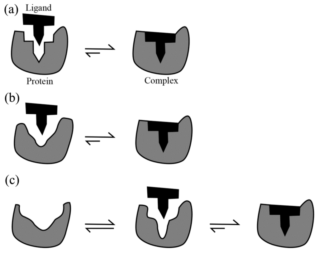 The underlying mechanisms of these three models and relevant case studies have been extensively reviewed elsewhere [5,53,58,59,60]. As a supplement, we here mainly focus on discussing how the protein–ligand binding processes are driven/dominated by the enthalpy and/or entropy changes under the scheme of the three models. This will facilitate having an in-depth understanding of the binding mechanisms and could help to improve binding affinity by modifying the acceptor or the ligand.