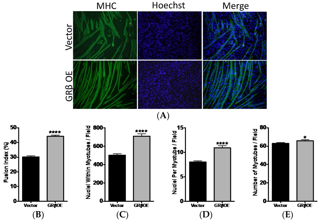 2.4. Overexpression of GRβ Enhances the Myotube Formation