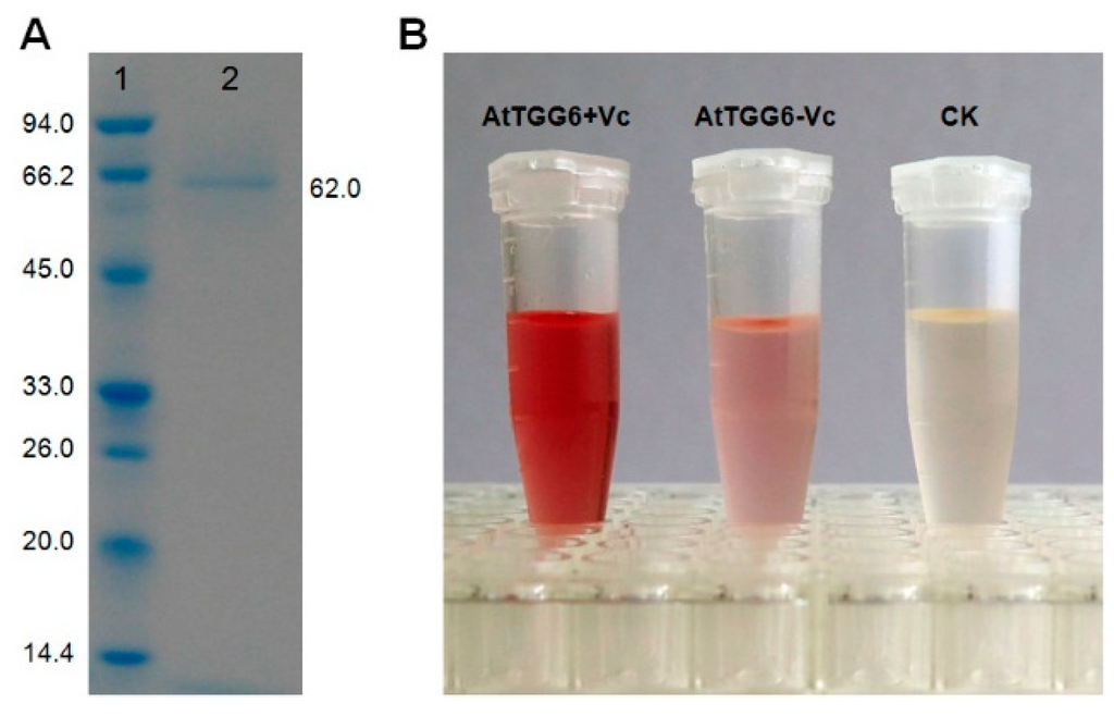 4.4. Overexpression of AtTGG6 in Pichia Pastoris