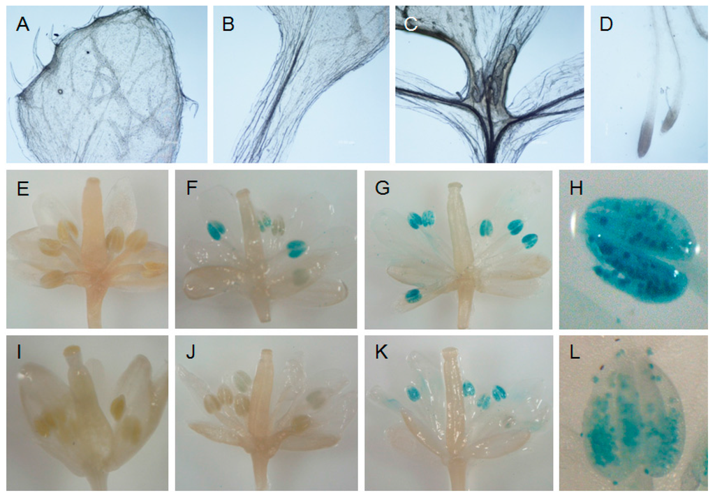 - Jefferson, R.A.; Kavanagh, T.A.; Bevan, M.W. Gus fusions: β-Glucuronidase as a sensitive and versatile gene fusion marker in higher plants. EMBO J. 1987, 6, 3901–3907. [Google Scholar] [PubMed]