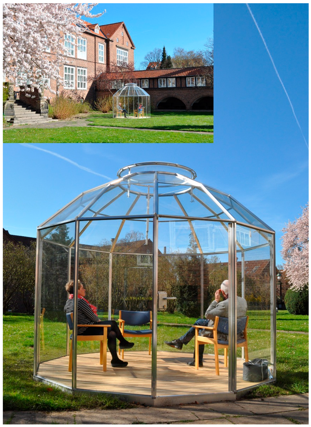 The greenhouse is constructed of one layer window glass with acrylic at the very top.