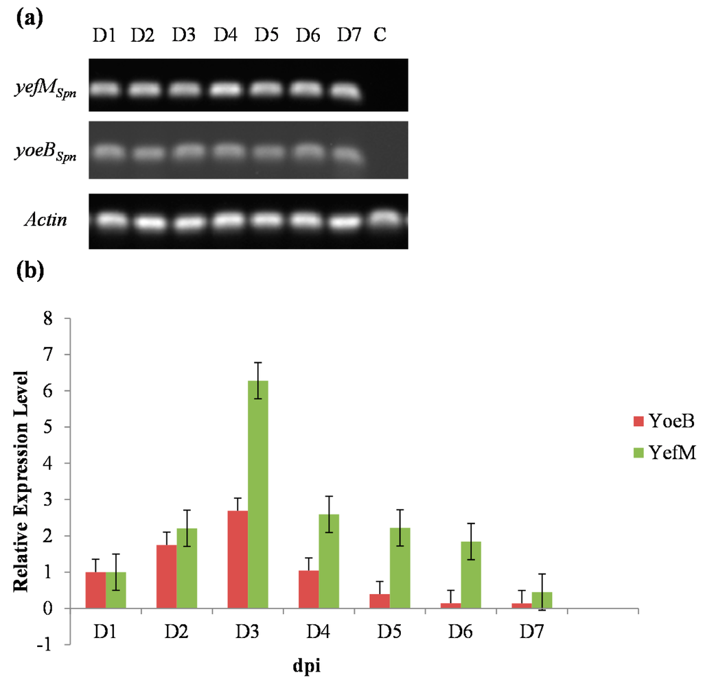 - Chan, W.T.; Neito, C.; Harikrishna, J.A.; Khoo, S.K.; Othman, R.Y.; Espinosa, M.; Yeo, C.C. Genetic regulation of the yefM-yoeBspn toxin-antitoxin locus of Streptococcus pneumoniae. J. Bacteriol. 2011, 193, 4612–4625. [Google Scholar] [CrossRef] [PubMed]