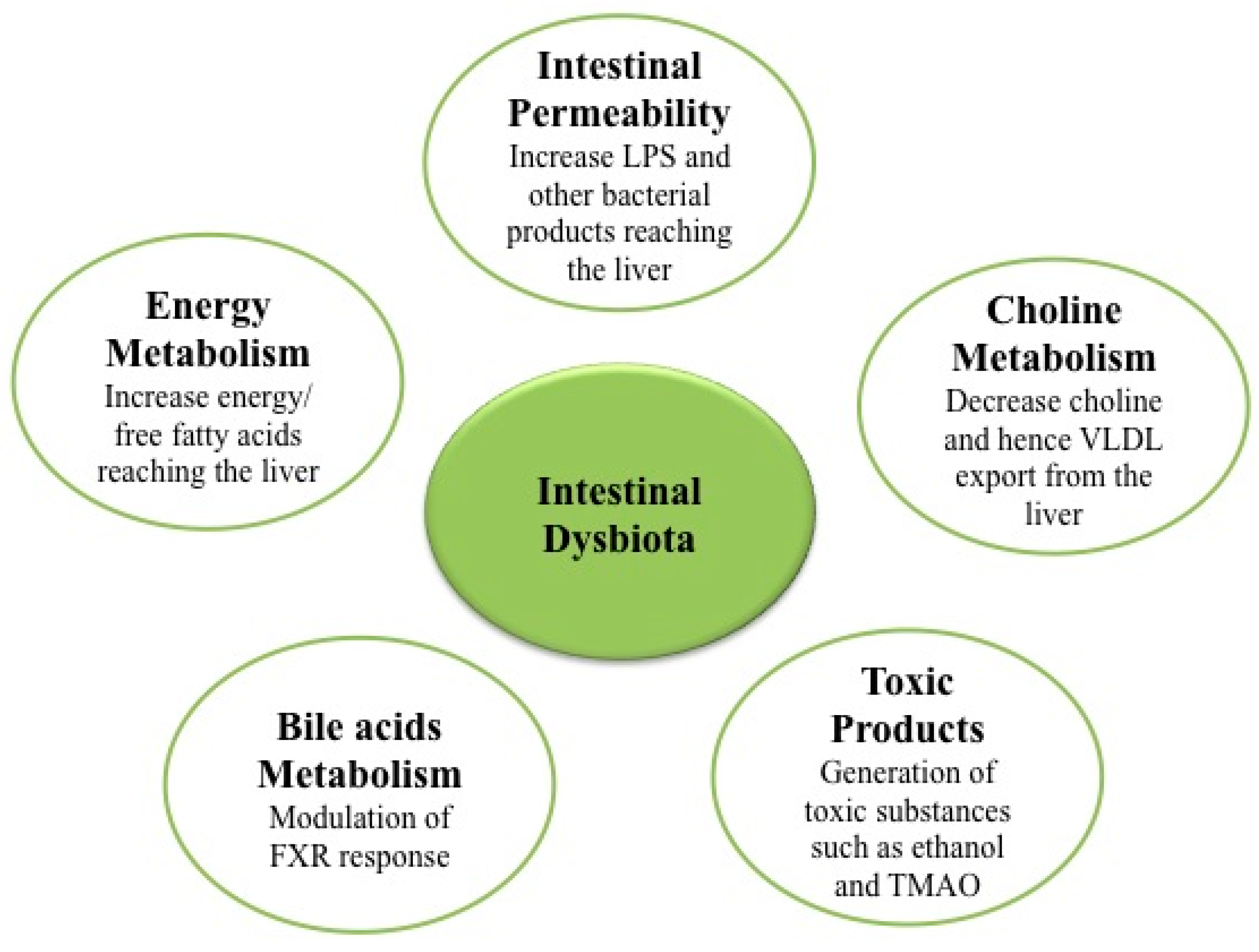 Nonalcoholic fatty liver disease (NAFLD) associated mechanisms of intestinal dysbiota.