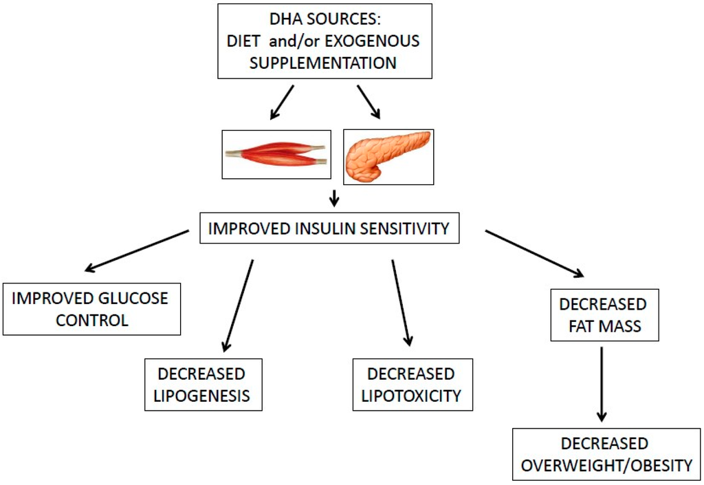 The role of DHA in insulin and glucose metabolism. DHA, docosahexaenoic acid.