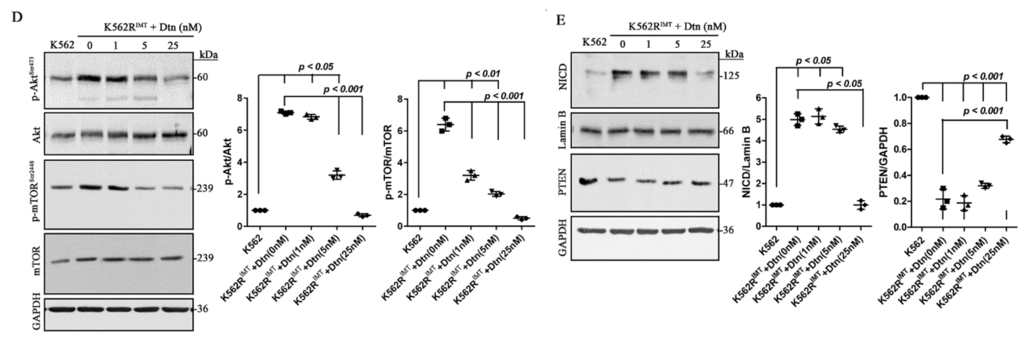 2.4. Loss of PTEN by Notch1 Activation Increases mTOR Activity in K562RIMT Cells