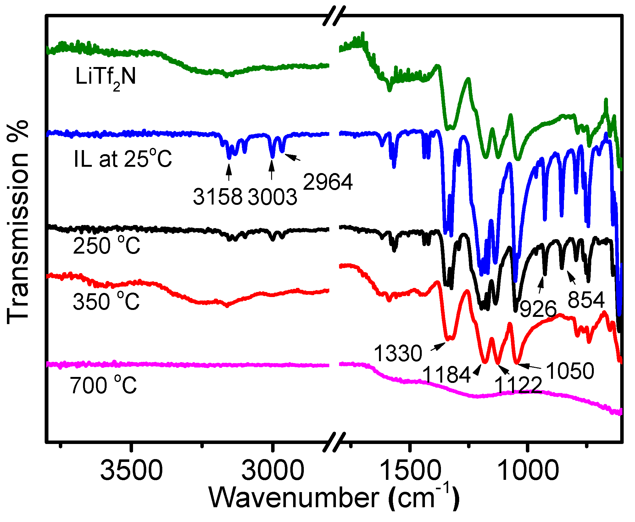 3.2. Synthesis of the PIL Poly(3-cyanomethyl-1-vinyl imidazolium TFSI)