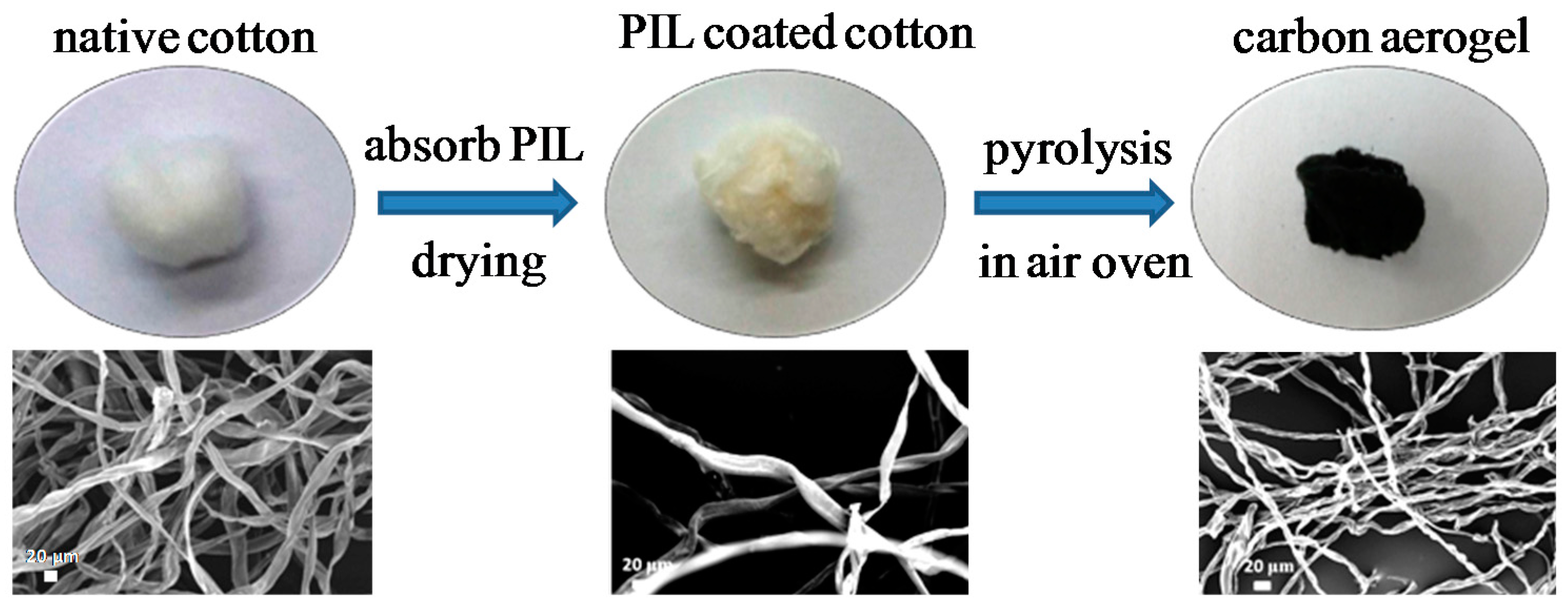 2.3. Carbonizaiton of Poly(Ionic Liquid) Coated Cotton in Air