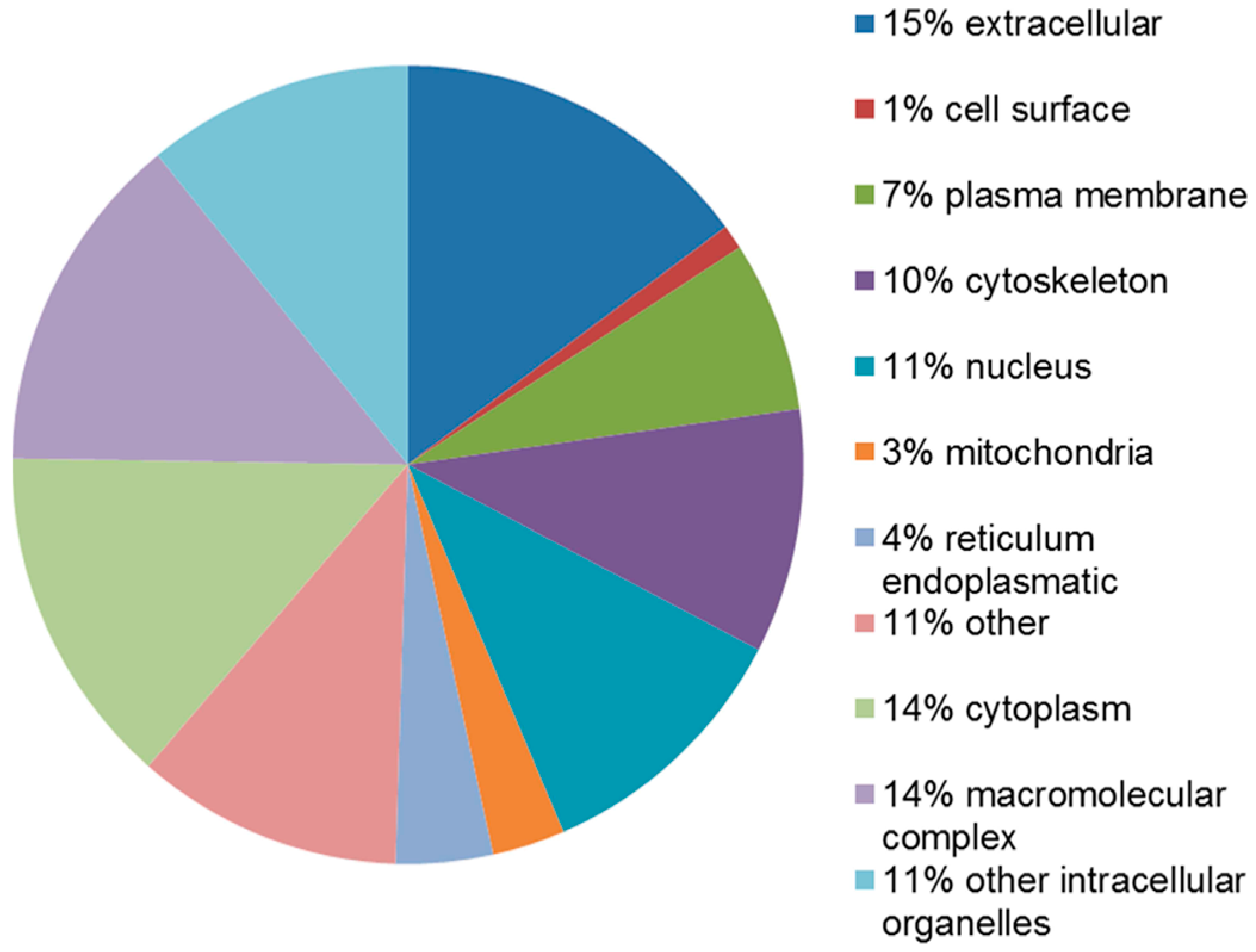 STRAP classification of proteins upregulated in the leiomyoma according to their subcellular localization.