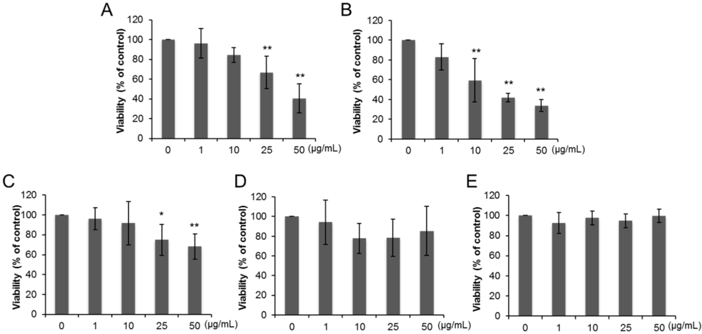 - Sayes, C.M.; Wahi, R.; Kurian, P.A.; Liu, Y.; West, J.L.; Ausman, K.D.; Warheit, D.B.; Colvin, V.L. Correlating nanoscale titania structure with toxicity: A cytotoxicity and inflammatory response study with human dermal fibroblasts and human lung epithelial cells. Toxicol. Sci. 2006, 92, 174–185. [Google Scholar] [CrossRef] [PubMed]