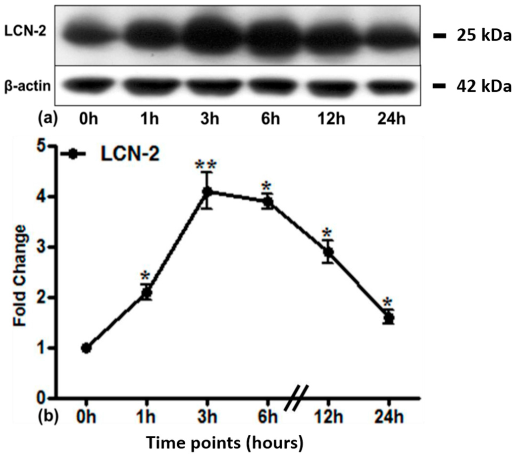 - Xu, M.J.; Feng, D.; Wu, H.; Wang, H.; Chan, Y.; Kolls, J.; Borregaard, N.; Porse, B.; Berger, T.; Mak, T.W.; et al. Liver is the major source of elevated serum lipocalin-2 levels after bacterial infection or partial hepatectomy: A critical role for IL-6/STAT3. Hepatology 2015, 61, 692–702. [Google Scholar] [CrossRef] [PubMed]